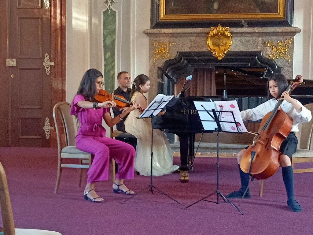 Dvořák: Dumky (3 věty), Mozart: Kegelstatt trio, Martinů: Divertimento č. 2, Milhaud: Divertimento, Šostakovič: Trio č. 2, + vokální host